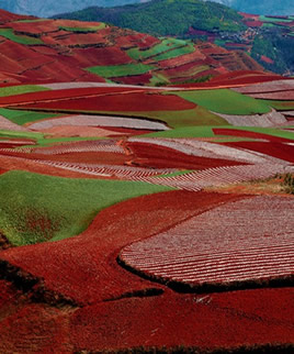 去东川红土地拍摄,“锦绣园”是一个亮点,今天易游云南摄影叫介绍一下“锦绣园”,红、黄、蓝、绿等色彩尽收眼底,仿佛走进了花的海洋,走进了色彩斑斓的世界。从上往下俯视,清晰可见的线条,对比鲜明的色块,明暗回应的立体图案,随时变化的景致及蓝天、白云组成一幅幅瞬间即变的图案,即使在同一个季节的同一天的不同时刻,你一定能欣赏到不同的画面。这里的景色随着日、月的升降,流云的舒展,风向的变化,人群的走动而变化,真有点人在画中行,画随景迁的感觉。
